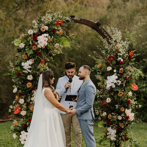 “I give my wholehearted recommendation for Fiona and her team. She was a delight to work with and turned our dream wedding florals into reality. She produced the most beautiful bouquets, lapel flowers, cake toppers, arbour arrangements, and table centrepieces. We also opted for her arbour hire and table decorating services, and the result was breathtaking. It felt like being in a fairytale because everything was so gorgeous and perfect. Moreover, Fiona also designed the most stunning seating chart, place-cards, and table number signs to complement our floral choices. I highly recommend the extra pack-up service as this took the stress off us during our special day. Her fees were very reasonable given the huge amount of effort she and her team put in and the amount of stress that it took off us. They were truly the most perfect vendor to work with. Thank you so much!"