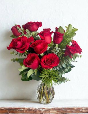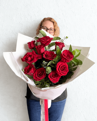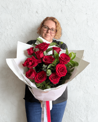 For a smaller gesture, choose the Small size with 6 roses, or make a bolder impression with the Large size featuring 18 roses — each beautifully styled with lush greenery.