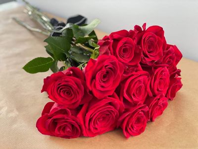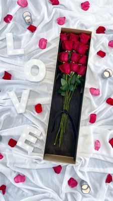 12 or 24 gorgeous premium long stem red roses presented in a long gift box.